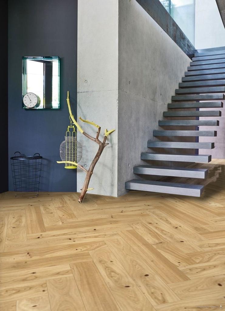 Parquet flooring OAK OTRANTO, dimensions: 725x130x14 mm. Herringbone pattern parquet.